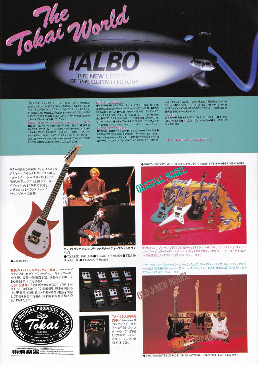 東海楽器の広告ページ。この年に発売されたTalboも載っている。